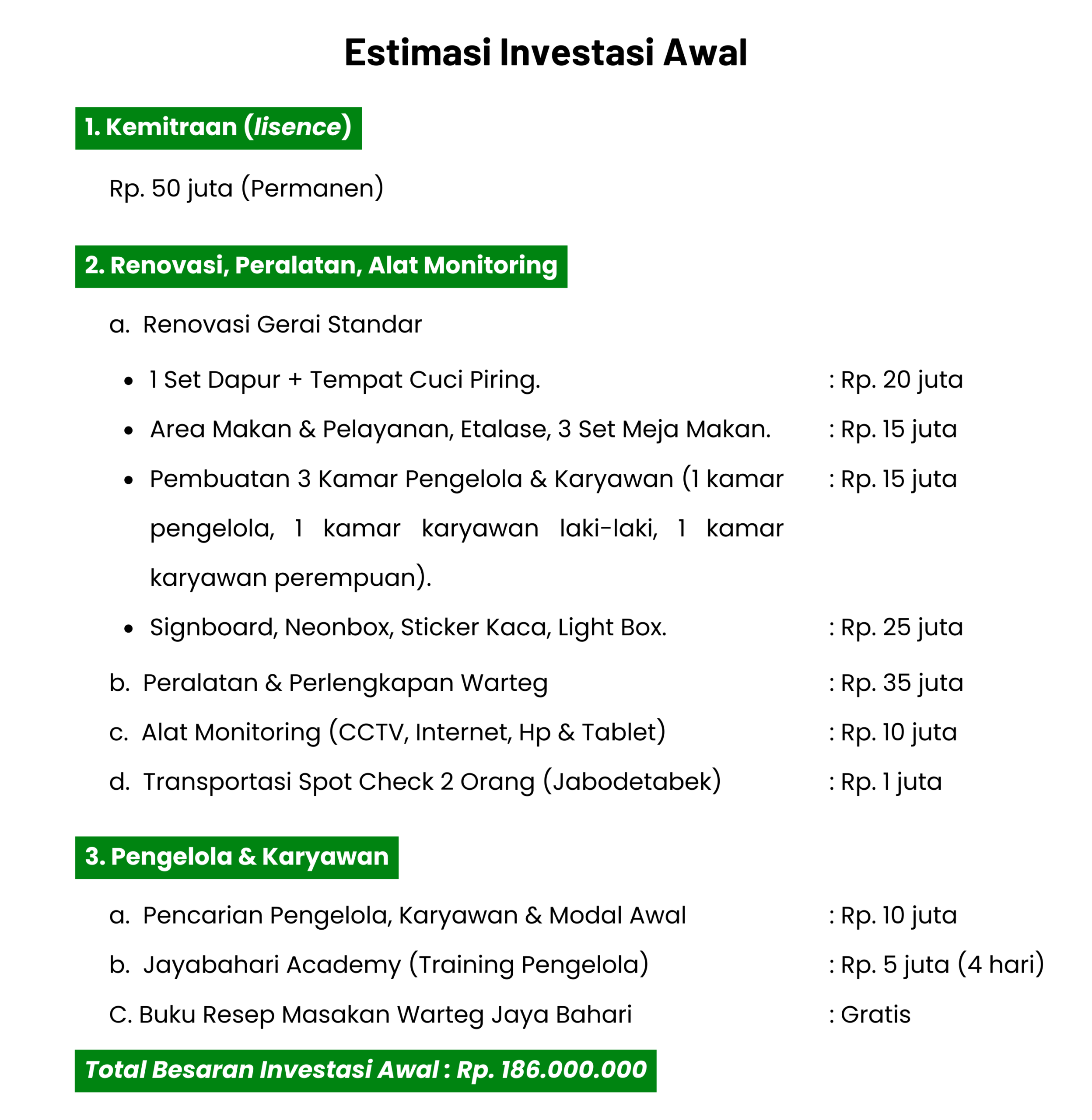 Harga tersebut diluar dari Sewa Bangunan/Ruko, Peralatan & Renovasi